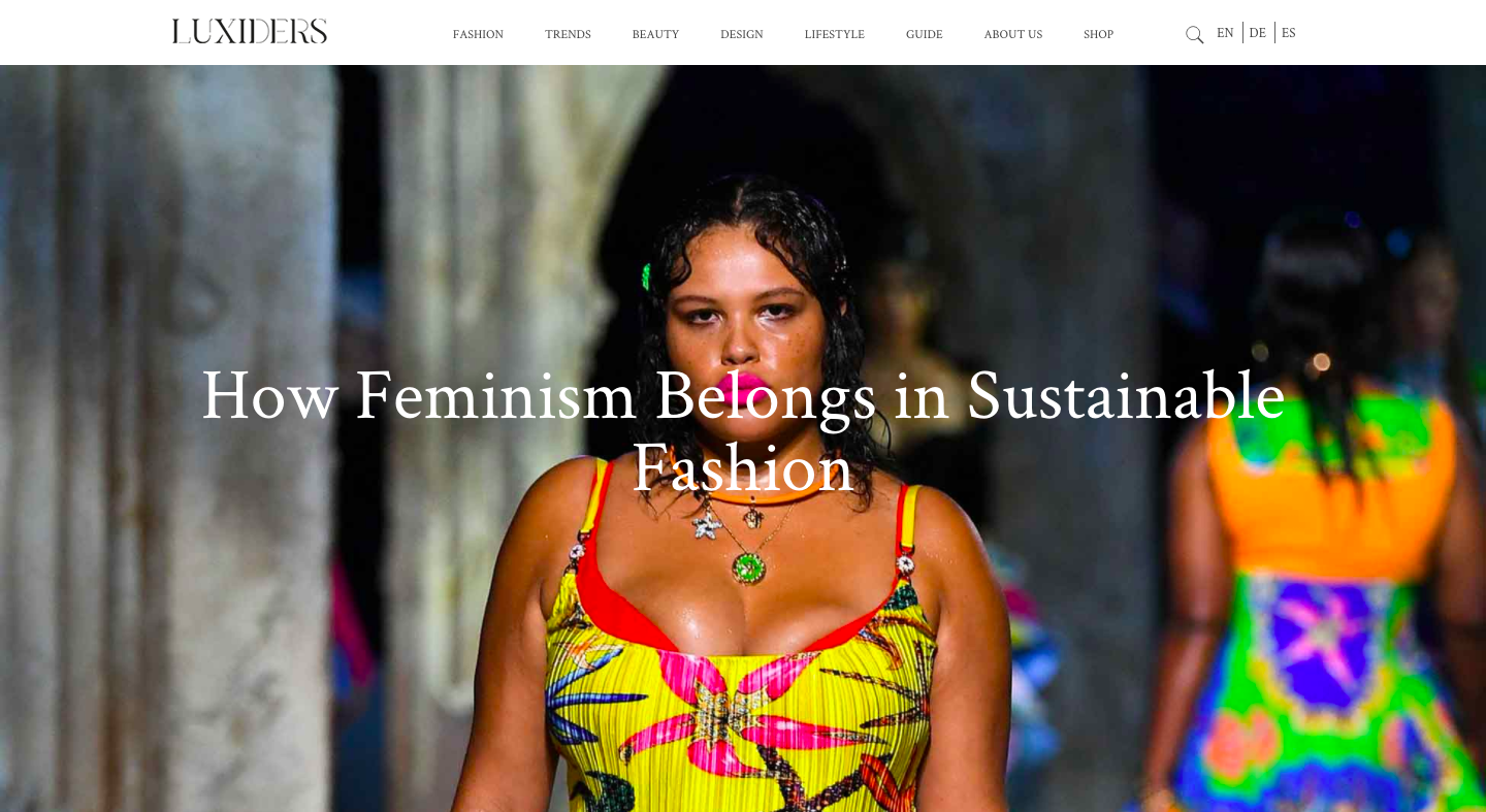 Luxiders Magazine - Fashion ContributorI collaborate with this publication dedicated to responsible fashion and arts. For them, I write on feminism in the fashion industry, interview committed artists and analyze how fashion trends are a reflection of global issues. Discover the website →