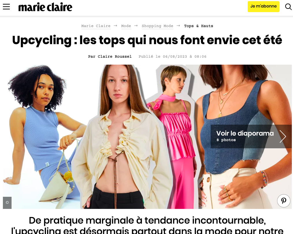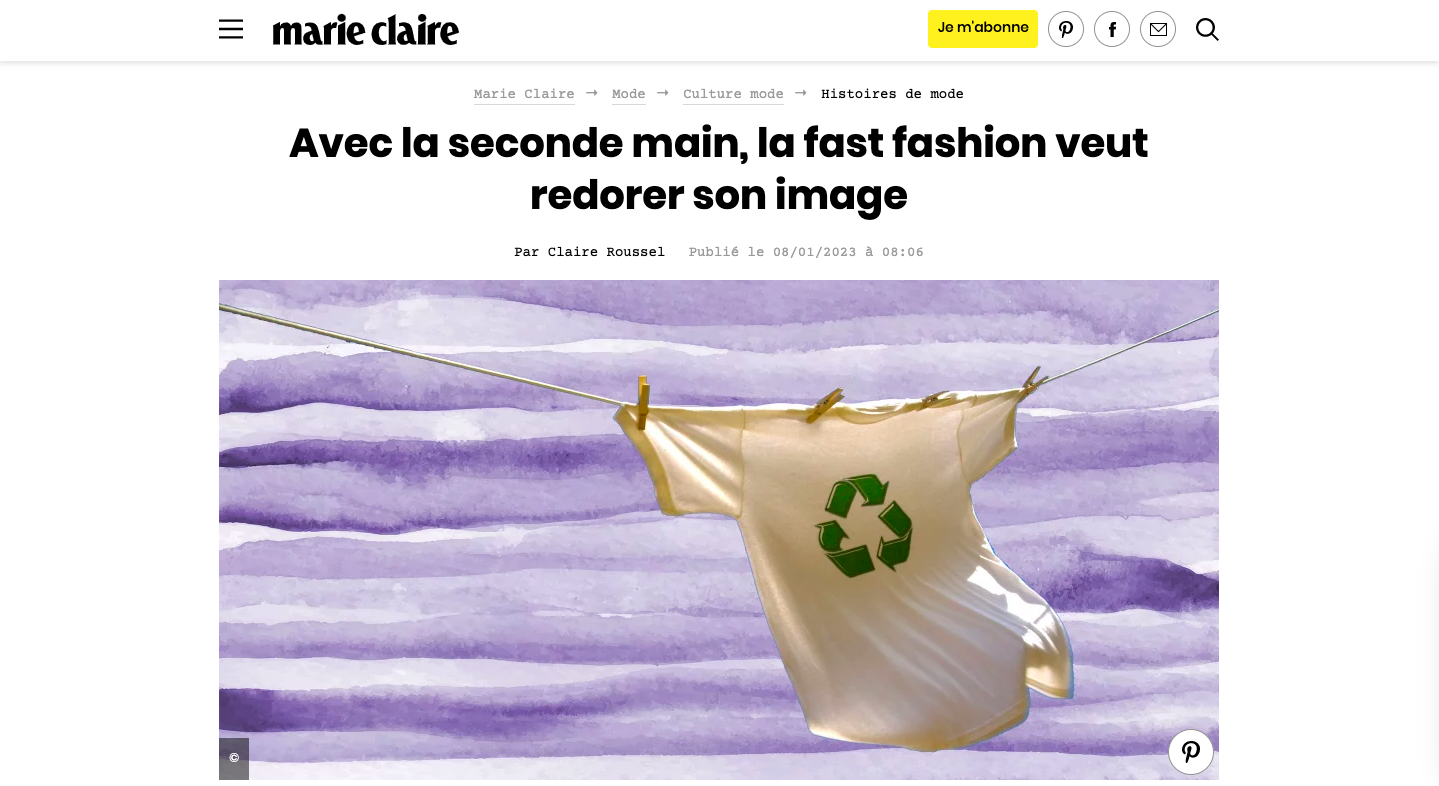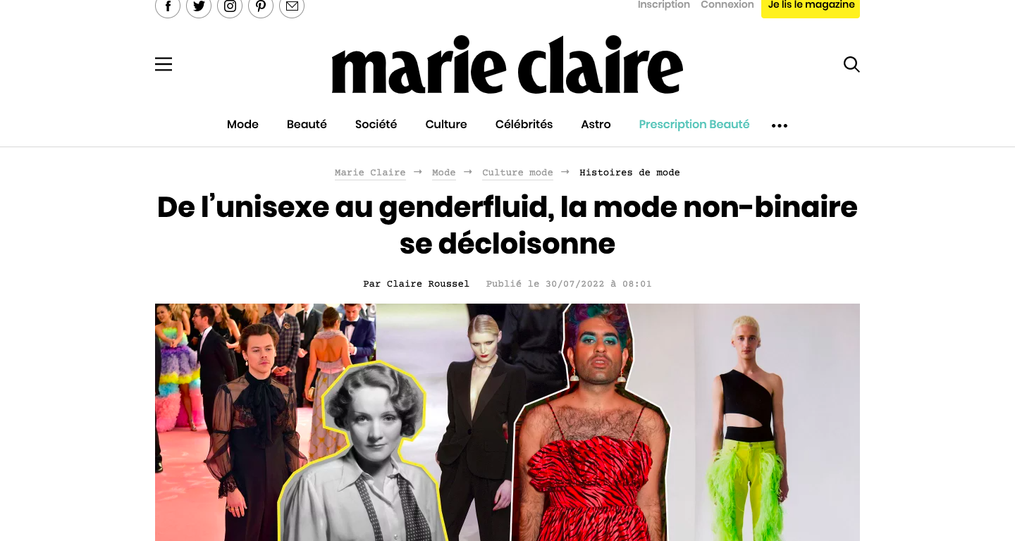 Collaborant avec ce magazine depuis juillet 2022, je rédige des articles mode sous un angle sociologique ou écologique : une histoire de la mode non-binaire, une analyse du greenwashing de la fast fashion via la seconde main, une interview de la militante Orsola de Castro...