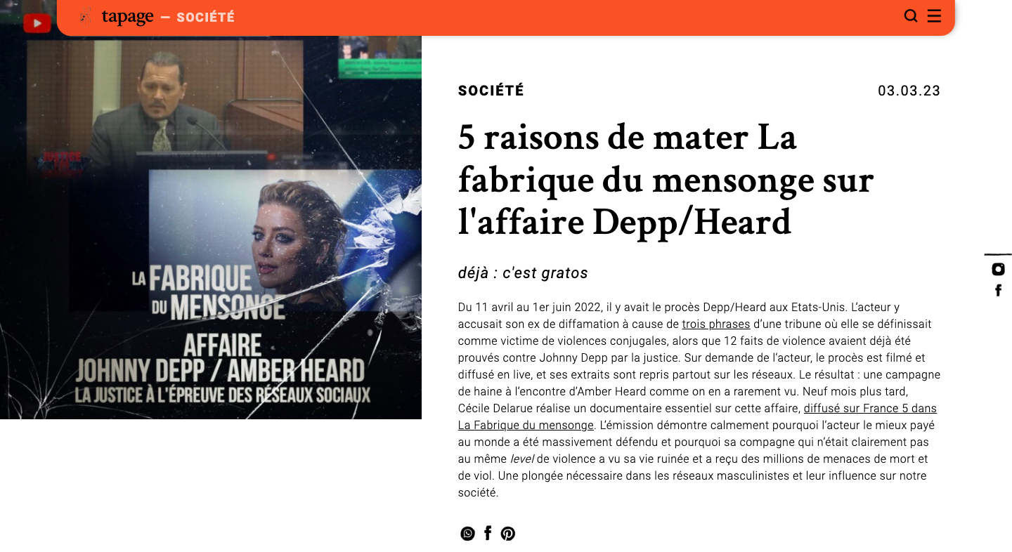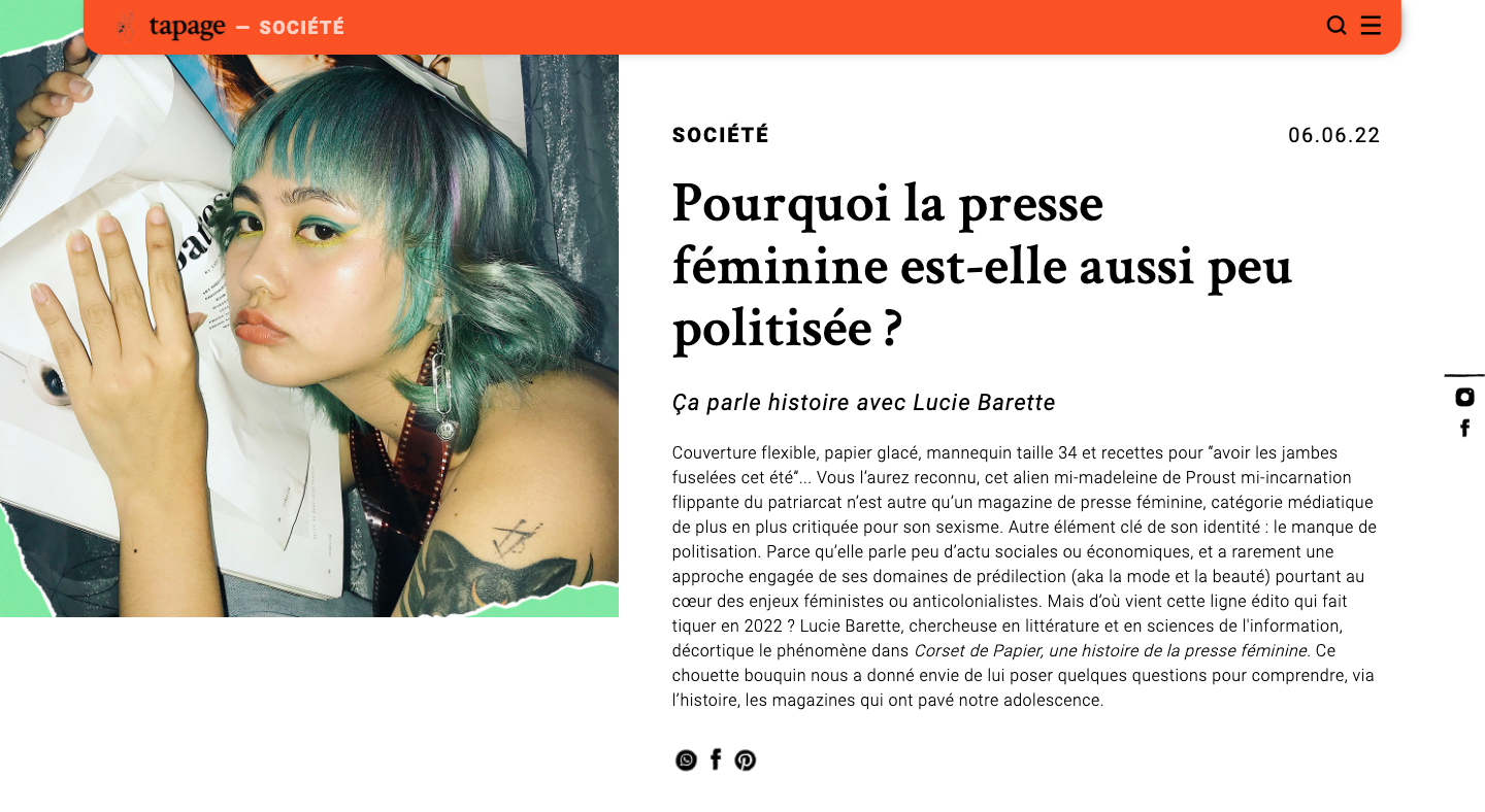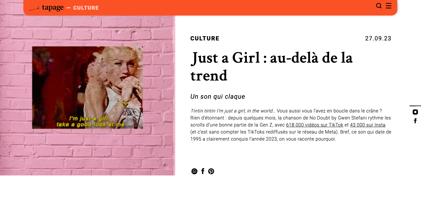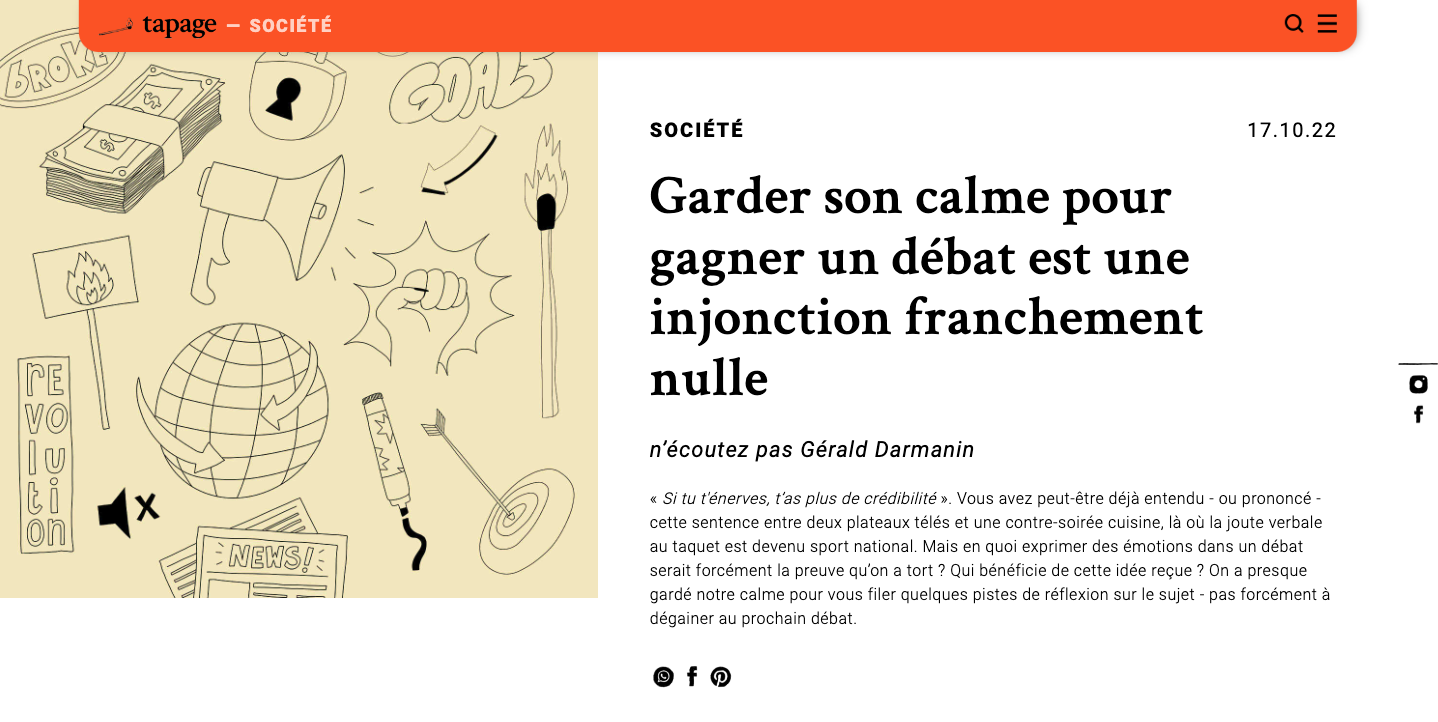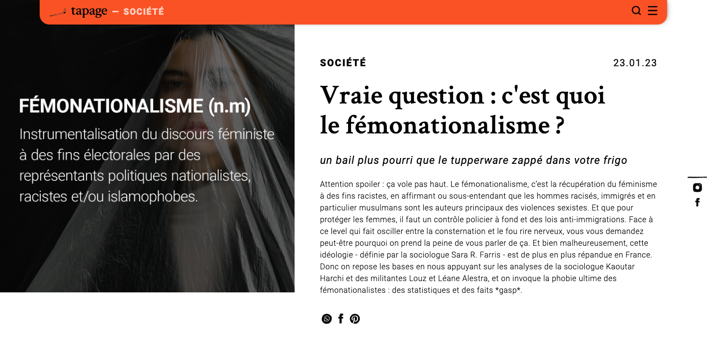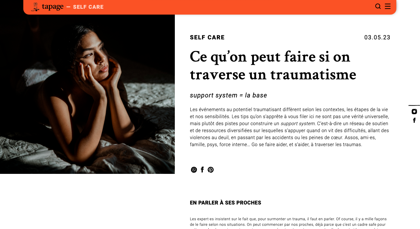 Tapage - Journaliste pigisteDepuis septembre 2021, j’ai écrit plus de 80 articles pour ce media digital portant sur les enjeux sociaux comme le féminisme, l’écologie ou la mode durable. Cette plateforme a pour but de faire circuler des idées engagées sur un ton léger et actuel. Pour Tapage, j’écris sur l’aspect sociologique des santiags, la vie des femmes childfree ou la censure des comptes féministes par Instagram. Accéder au site →
